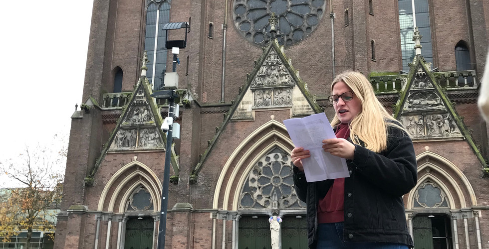 Via een uitgestippelde zoektocht maakten de leerlingen in de voormiddag kennis met de Eindhovense binnenstad, haar patrimonium en de hedendaagse kunstwerken die her en der in de stad geplaatst zijn.